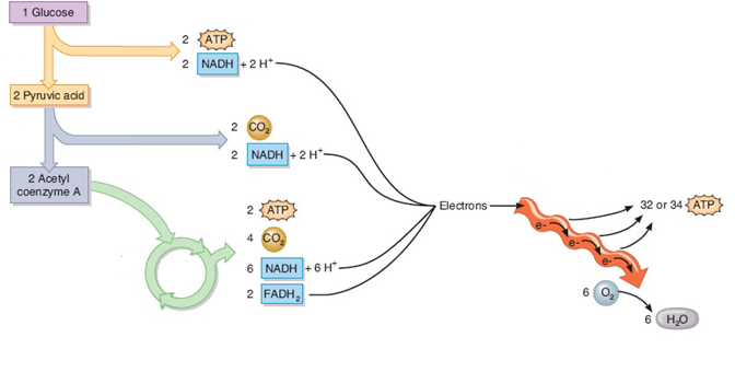 What remains are the electrons that have been given to the electron carrier molecules NADH and FADH2… these molecules move on to the Electron transport chain (ETC).