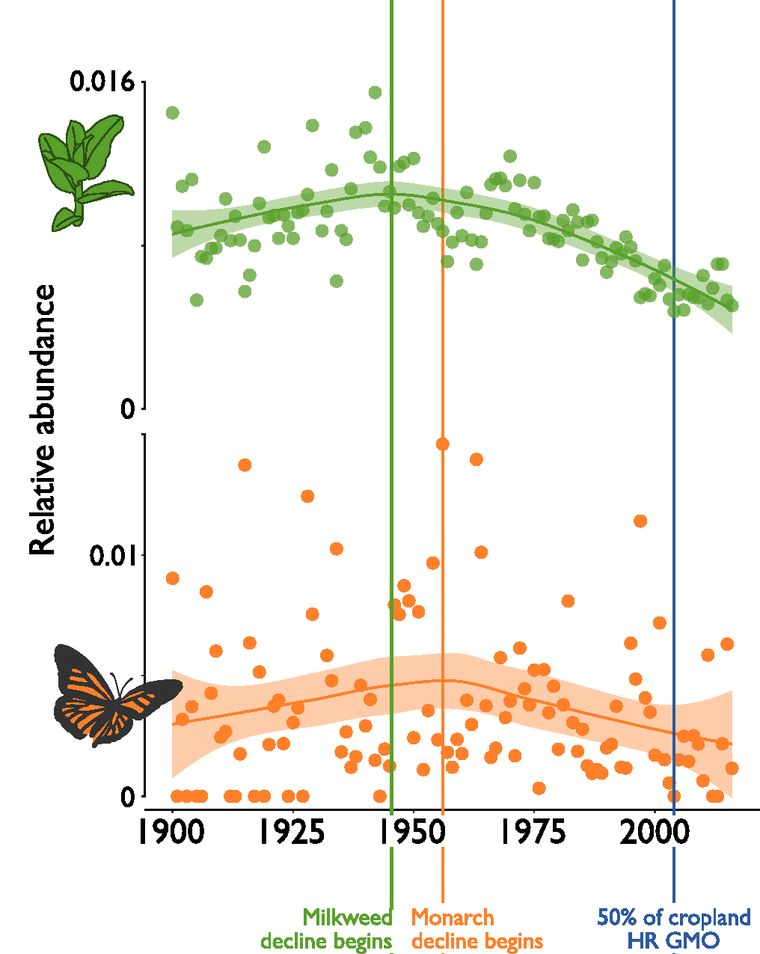 - Historical analysis of monarch trends indicate that Monarch butterfly and milkweed declines substantially predate the use of genetically modified crops (PNAS February 19, 2019, https://www.pnas.org/content/116/8/3006)