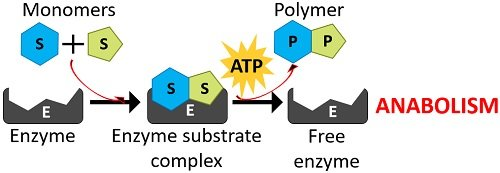 Enzymes in anabolic reactions: | Enzymes in catabolic reactions: |