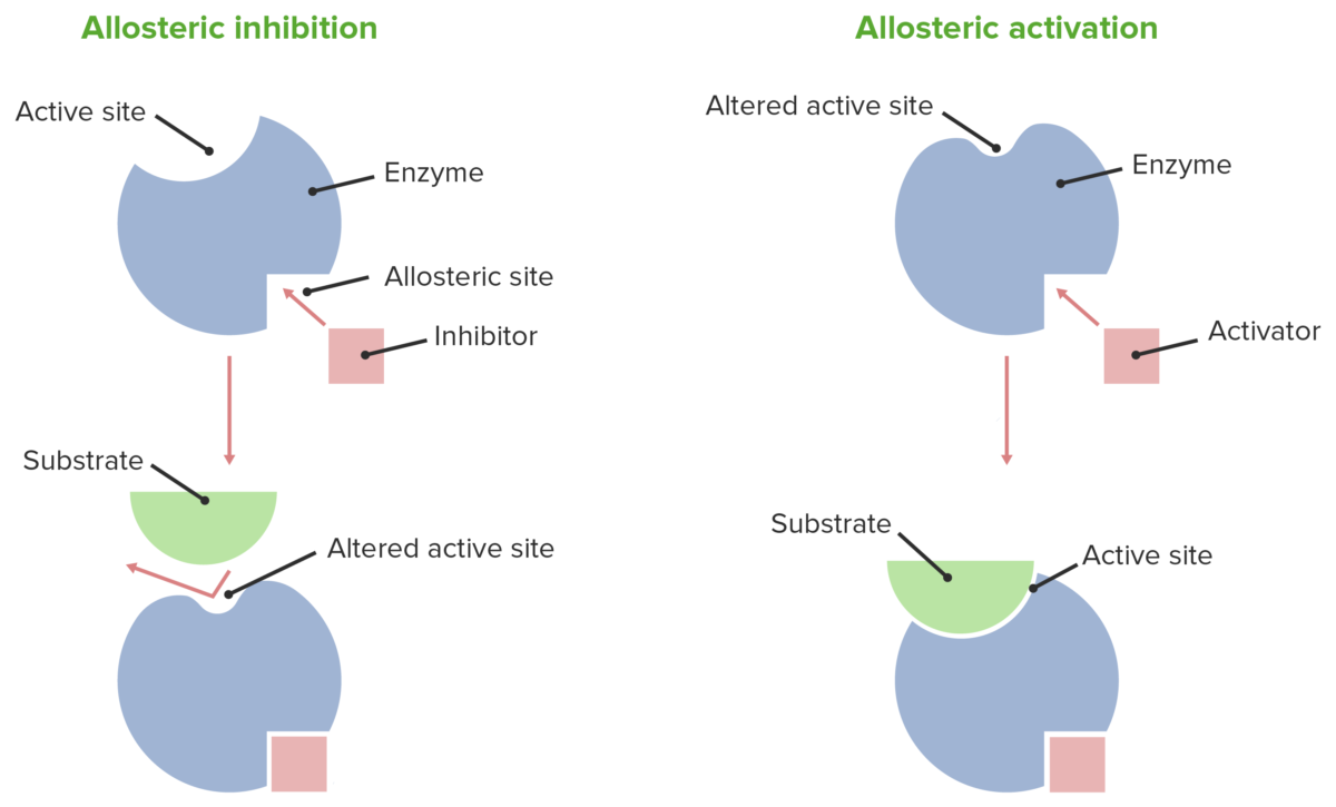 Enzyme action can be inhibited or promoted by the presence of other molecules that temporarily or permanently bind to them, either at their active site or at an allosteric site.
