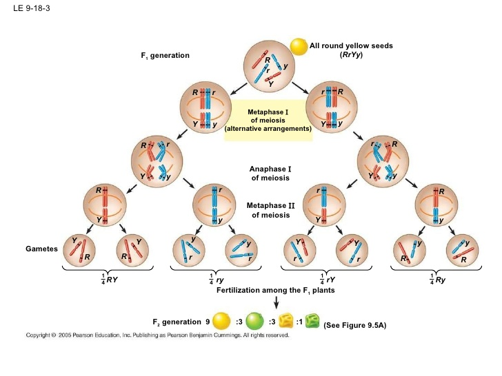 Only ________________________________________________________________________ (because of the ____________________________________________), so the gametes for the pure breeding round yellow must be and for the pure breeding wrinkled green .