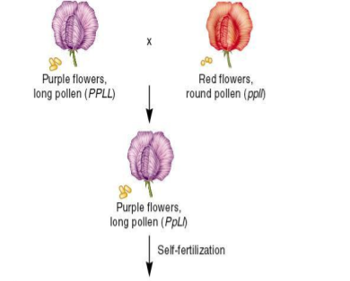 William Bateson and Reginald Punnett conducted a cross in sweet pea involving two different traits; flower color and pollen shape.