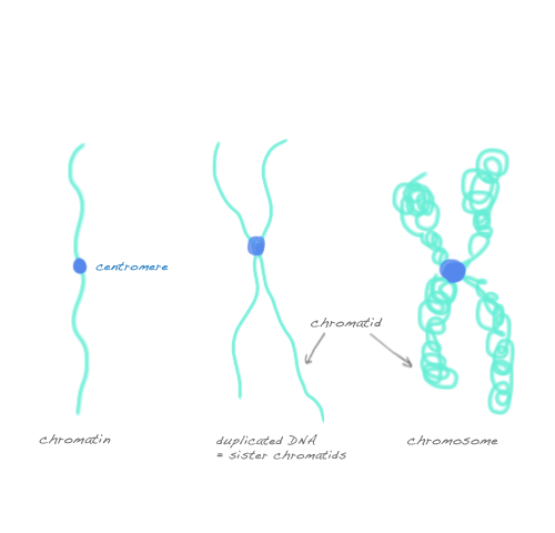 Each of the identical strands of DNA is called a ____________________________. The now replicated DNA is still in _______________________ form.