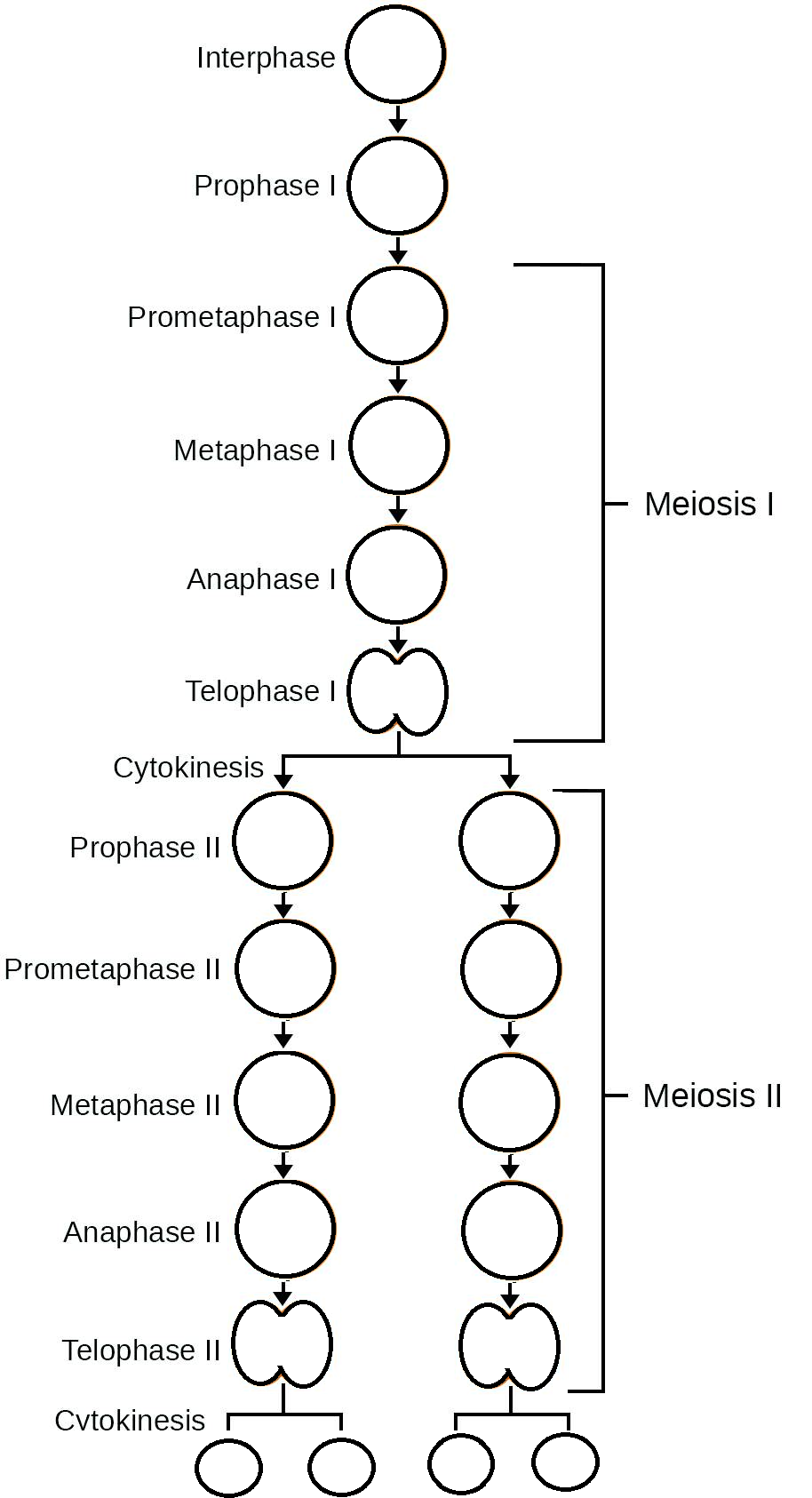 - Draw diagrams of cells in prophase, metaphase, anaphase and telophase in meiosis I and meiosis II.