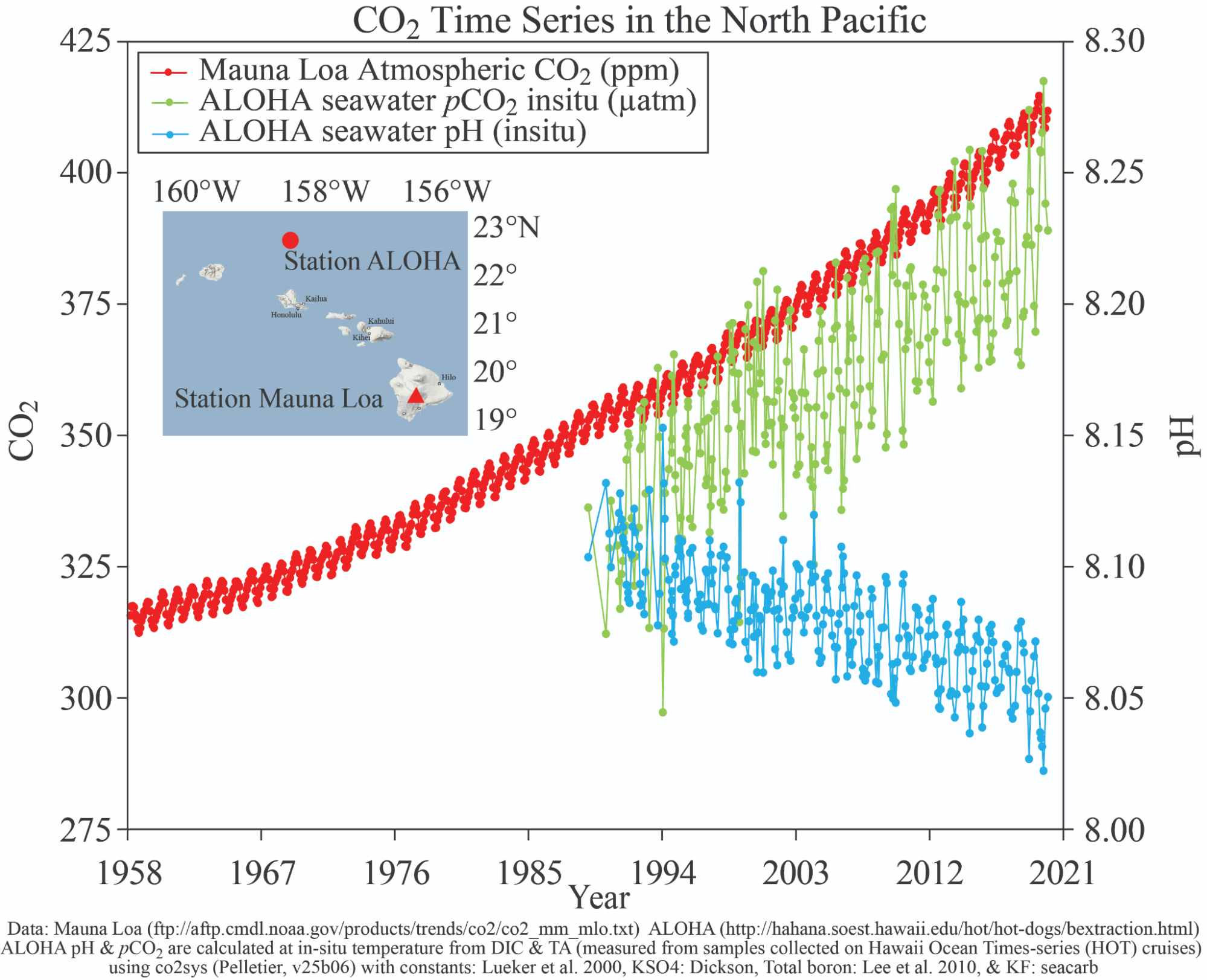 - Outline the effect of atmospheric CO2 concentration on ocean pH.