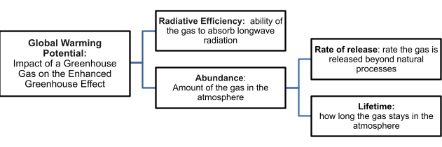 4.4.U3: The impact of a gas depends on its ability to absorb long wave radiation as well as on its concentration in the atmosphere