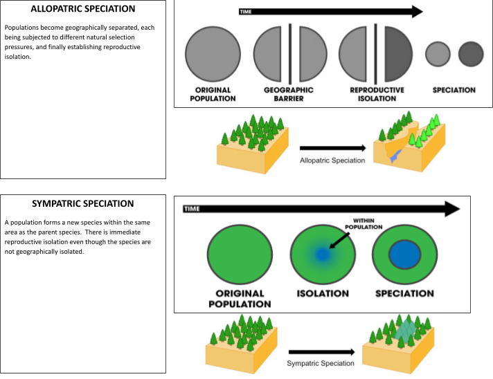 Reproductive isolation of populations can be geographic, behavioral or temporal (10.3.U3)