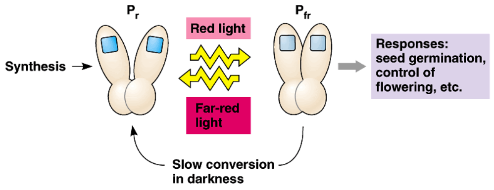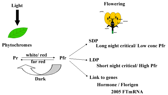 - Describe role of phytochrome in controlling flowering in long and short day plants.